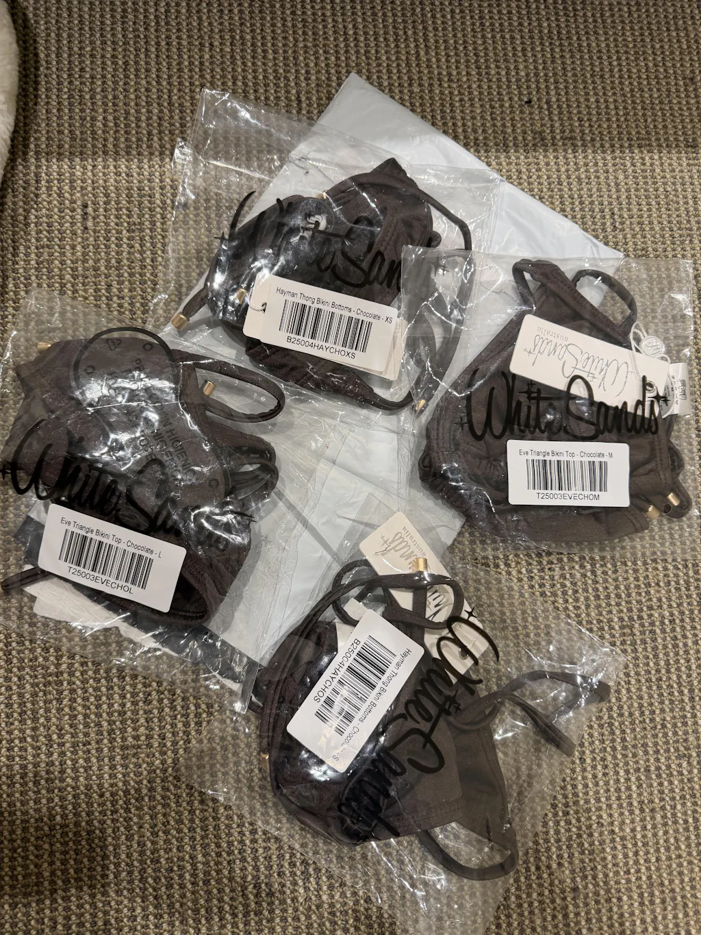 Attached images: chocolate bikini top, chocolate triangle bikini top, chocolate halter bikini top, chocolate upside down bikini top, chocolate string bikini top, chocolate micro bikini top.